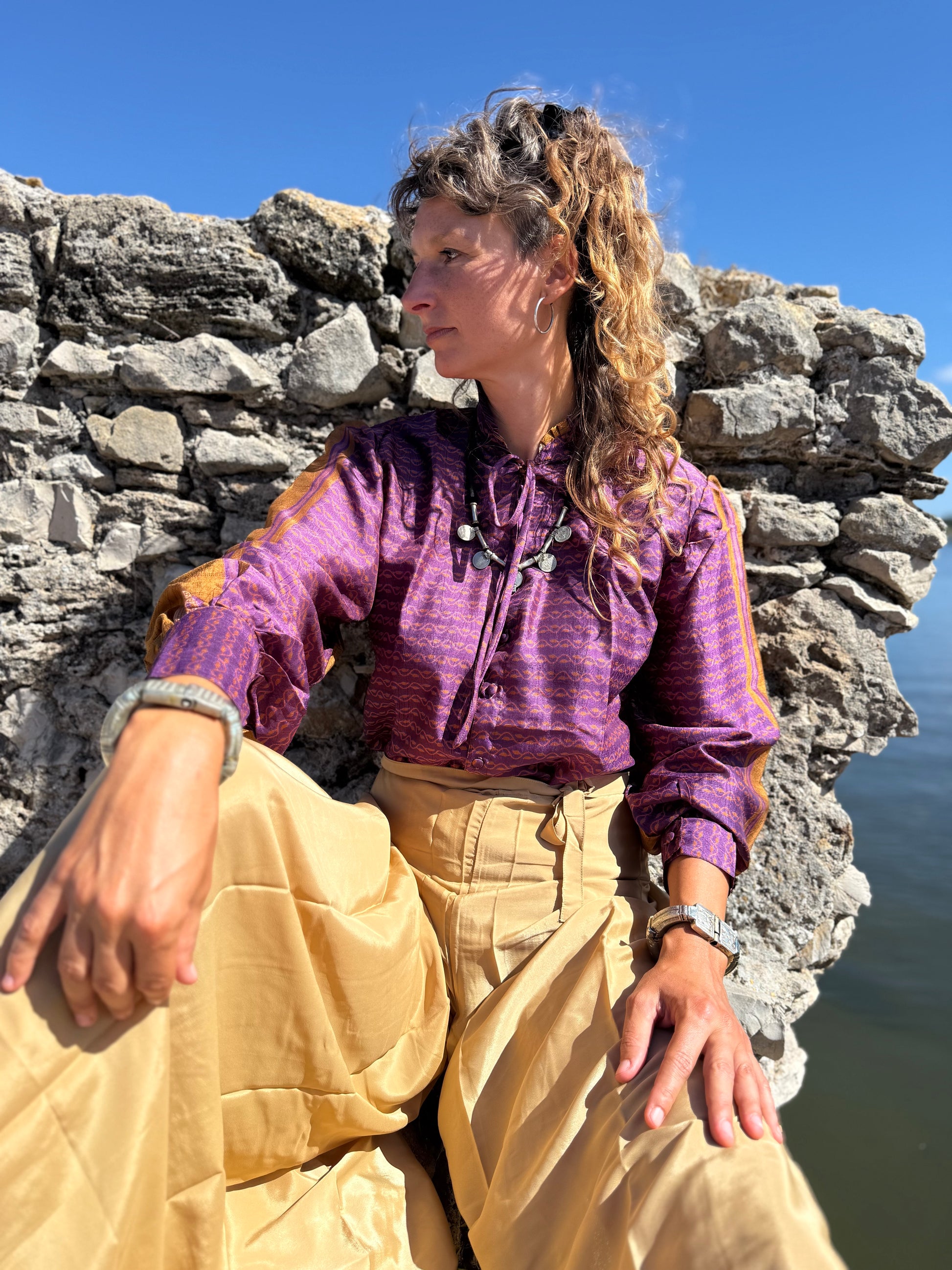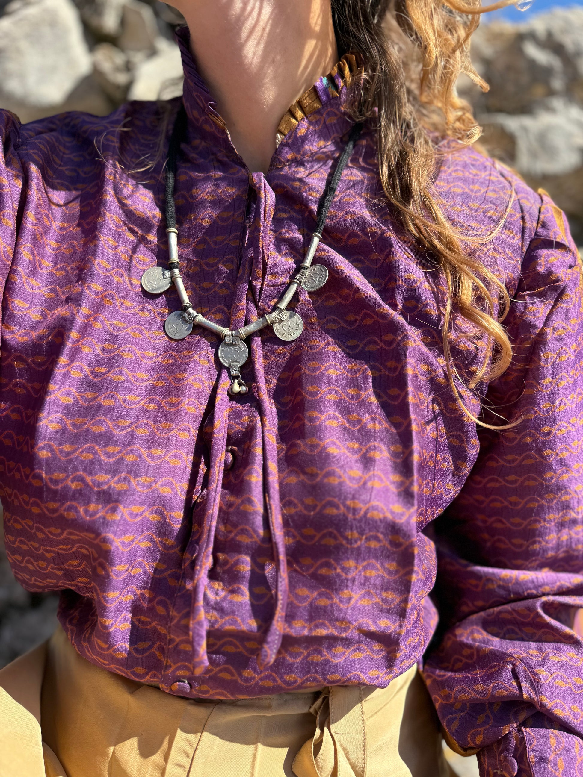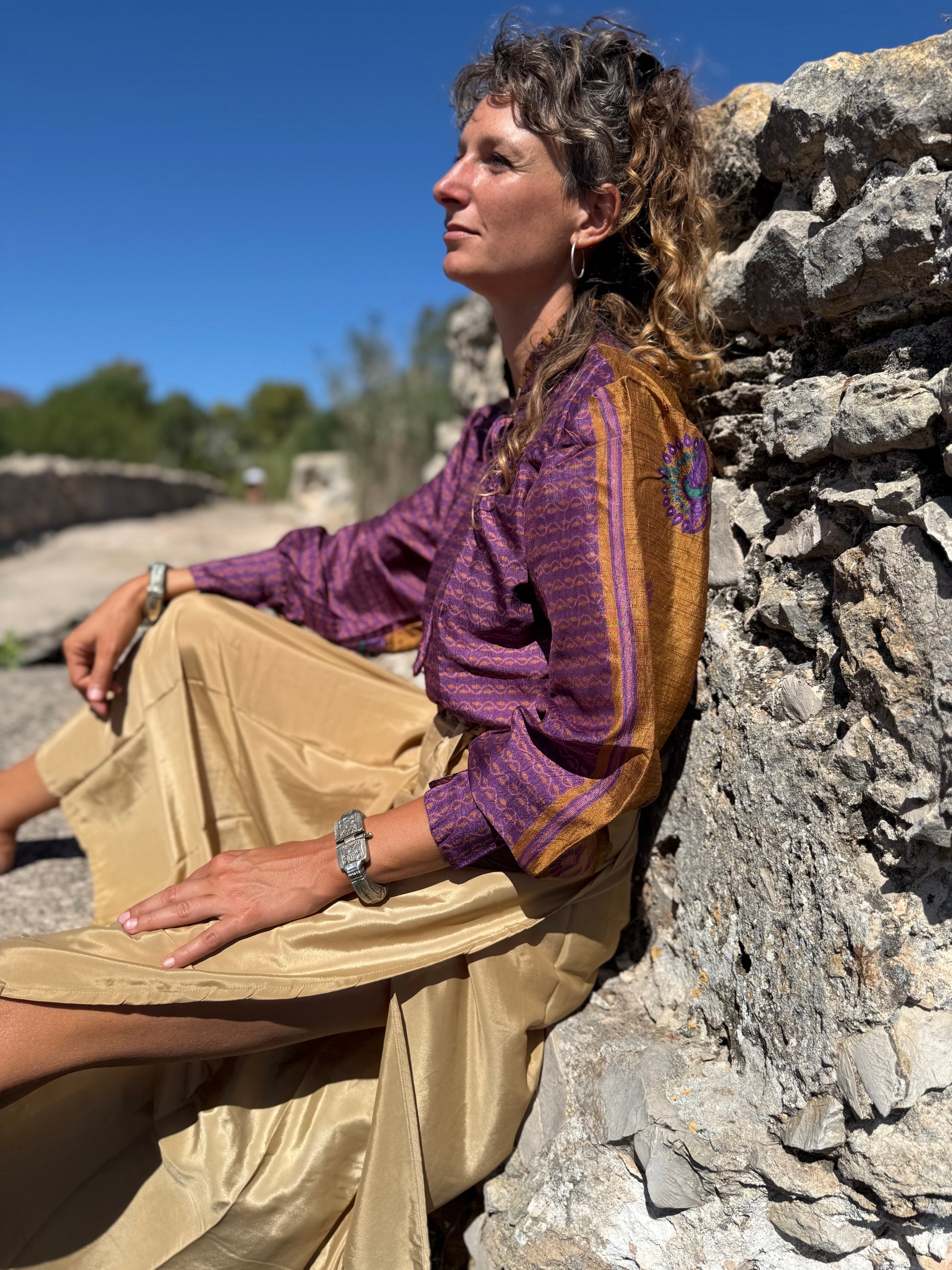 Flora è una camicia raffinata in setà indiana, pensata per esaltare l’eleganza dei gilet. Il suo design richiama il fascino barocco, con dettagli ricercati che evocano la moda di epoche passate. Il colletto a ventaglio e il delicato nastro all’inizio dello scollo aggiungono un tocco di romanticismo, mentre le maniche a palloncino donano volume e carattere, creando un equilibrio perfetto tra classicismo e modernità.