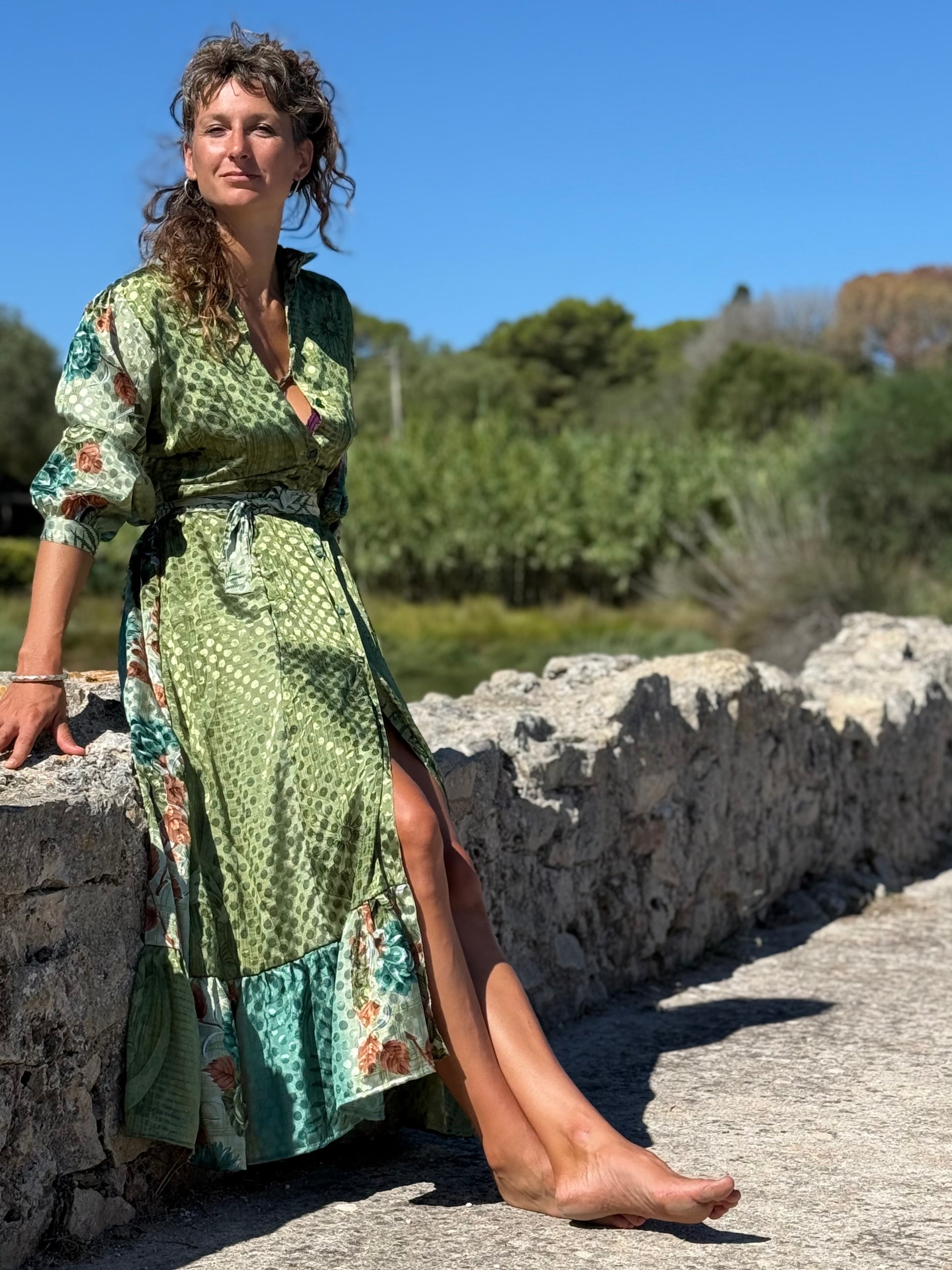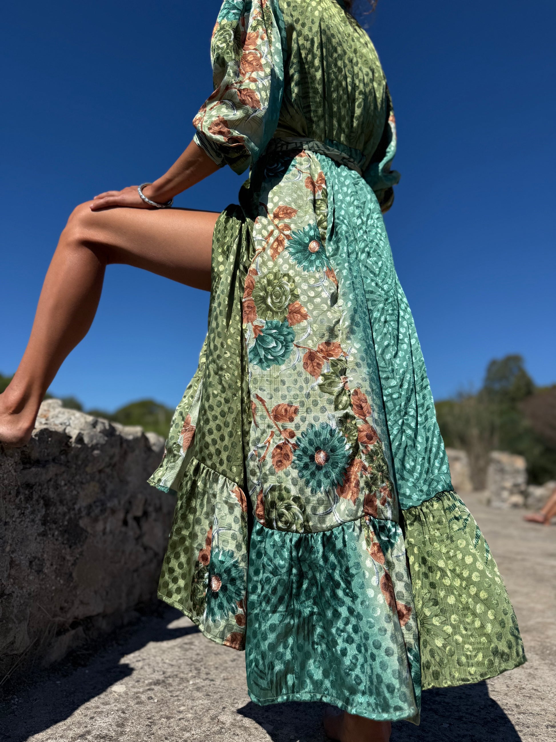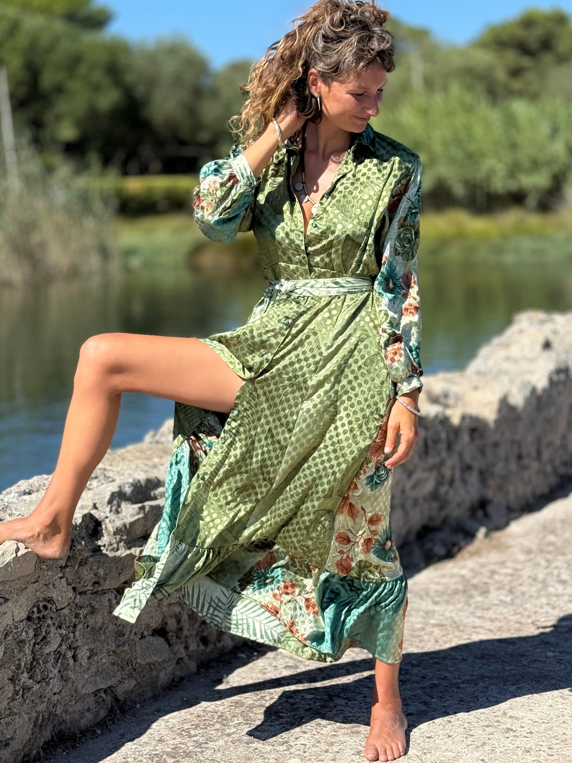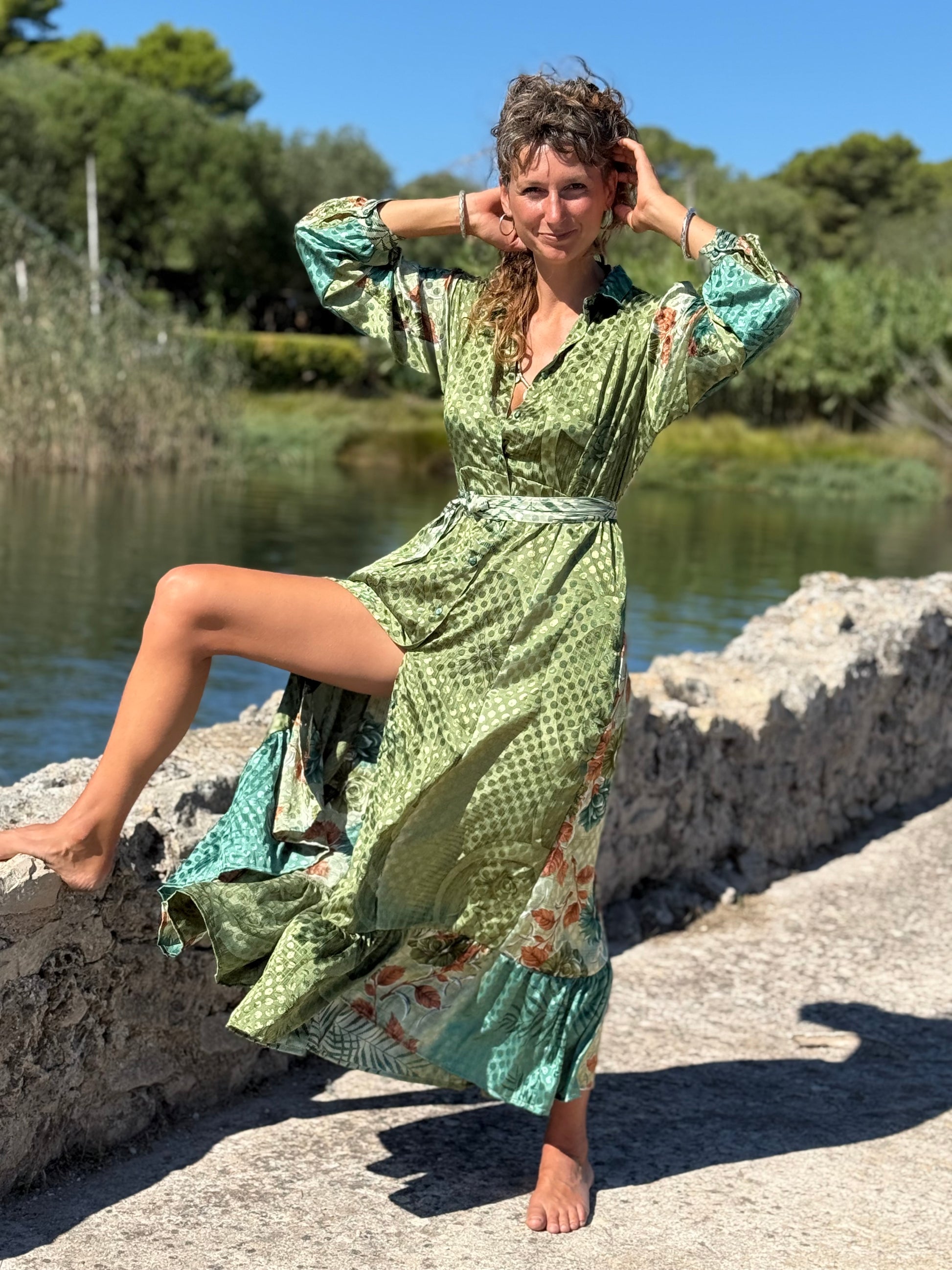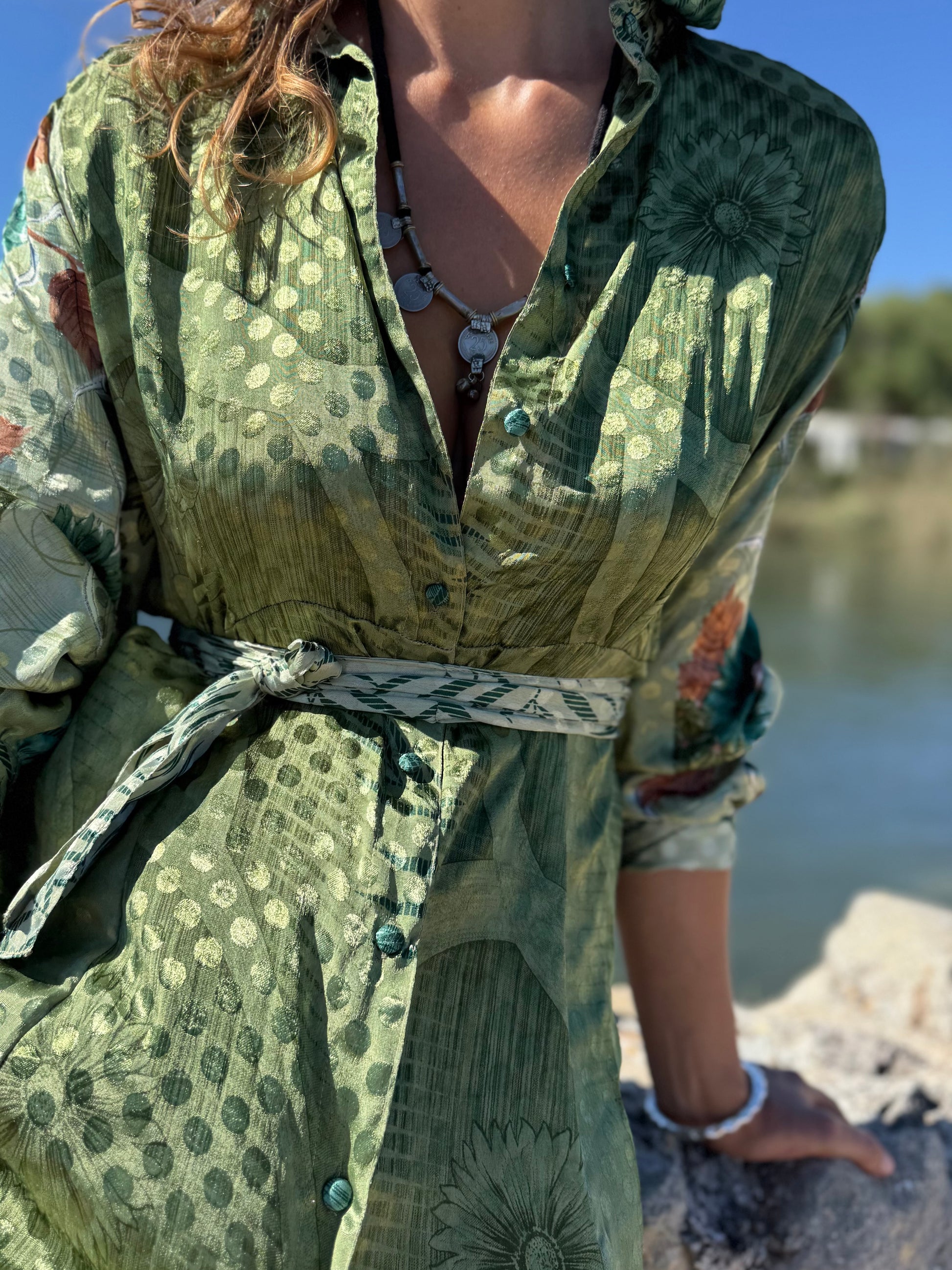 Questo capo é adatto per vestire dalla primavera all’autunno; puoi indossarlo come abito, copri costume e come spolverino. Manica ampia a palloncino.