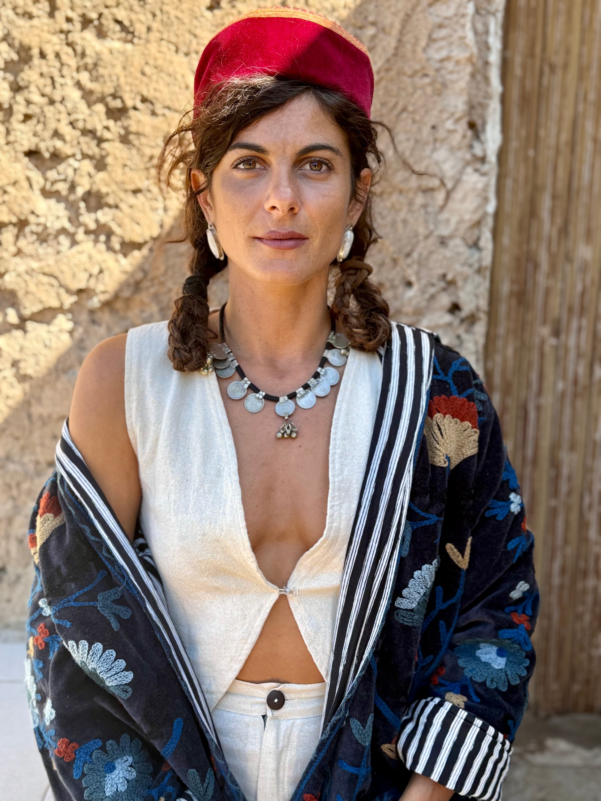 Un capo perfetto per chi sceglie tessuti naturali, design artigianale e una moda che parla di autenticità.