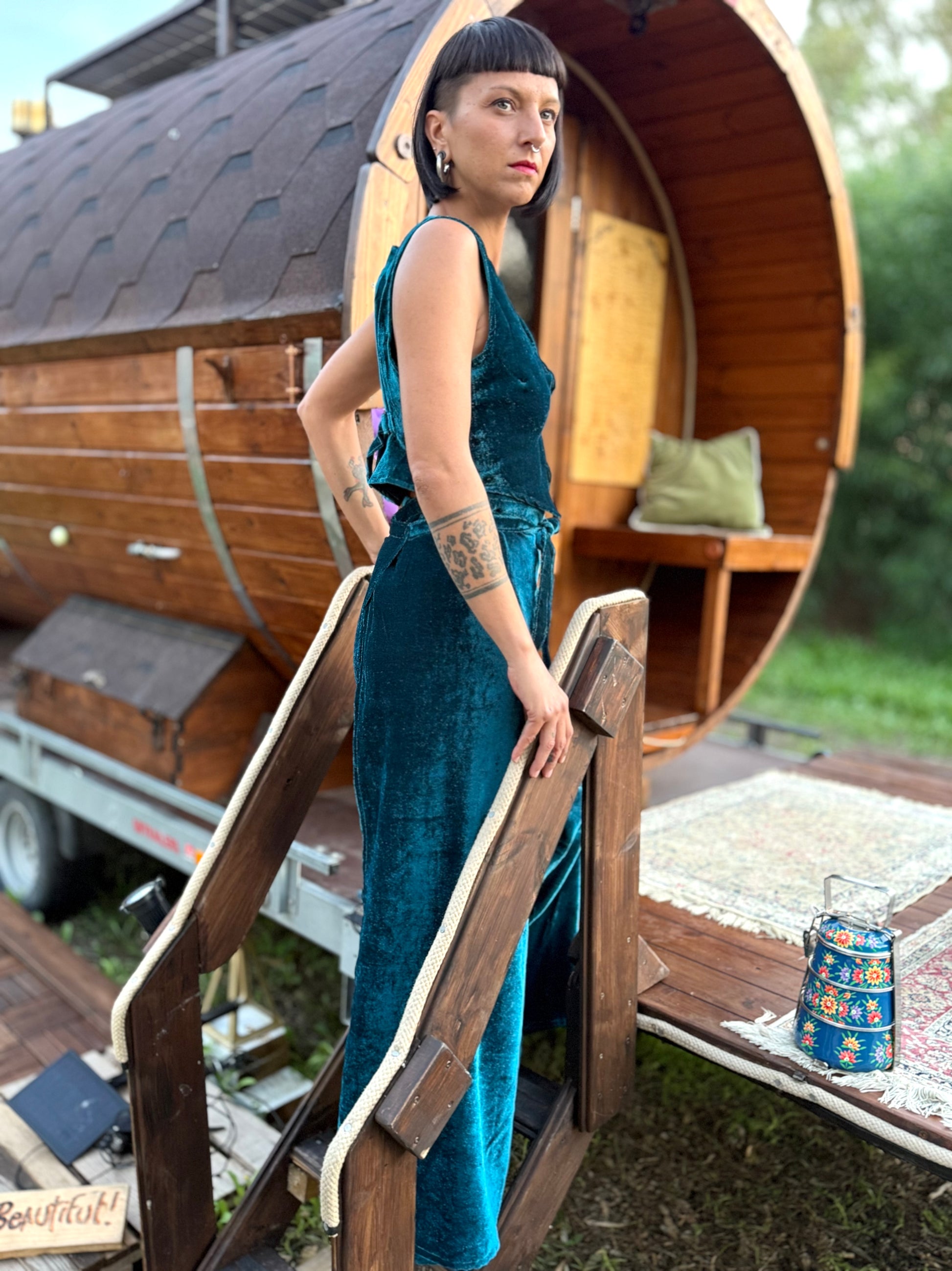 Ecco un altro articolo versatile pensato per voi! Si tratta di un completo in velluto di viscosa adatto a molteplici occasioni.